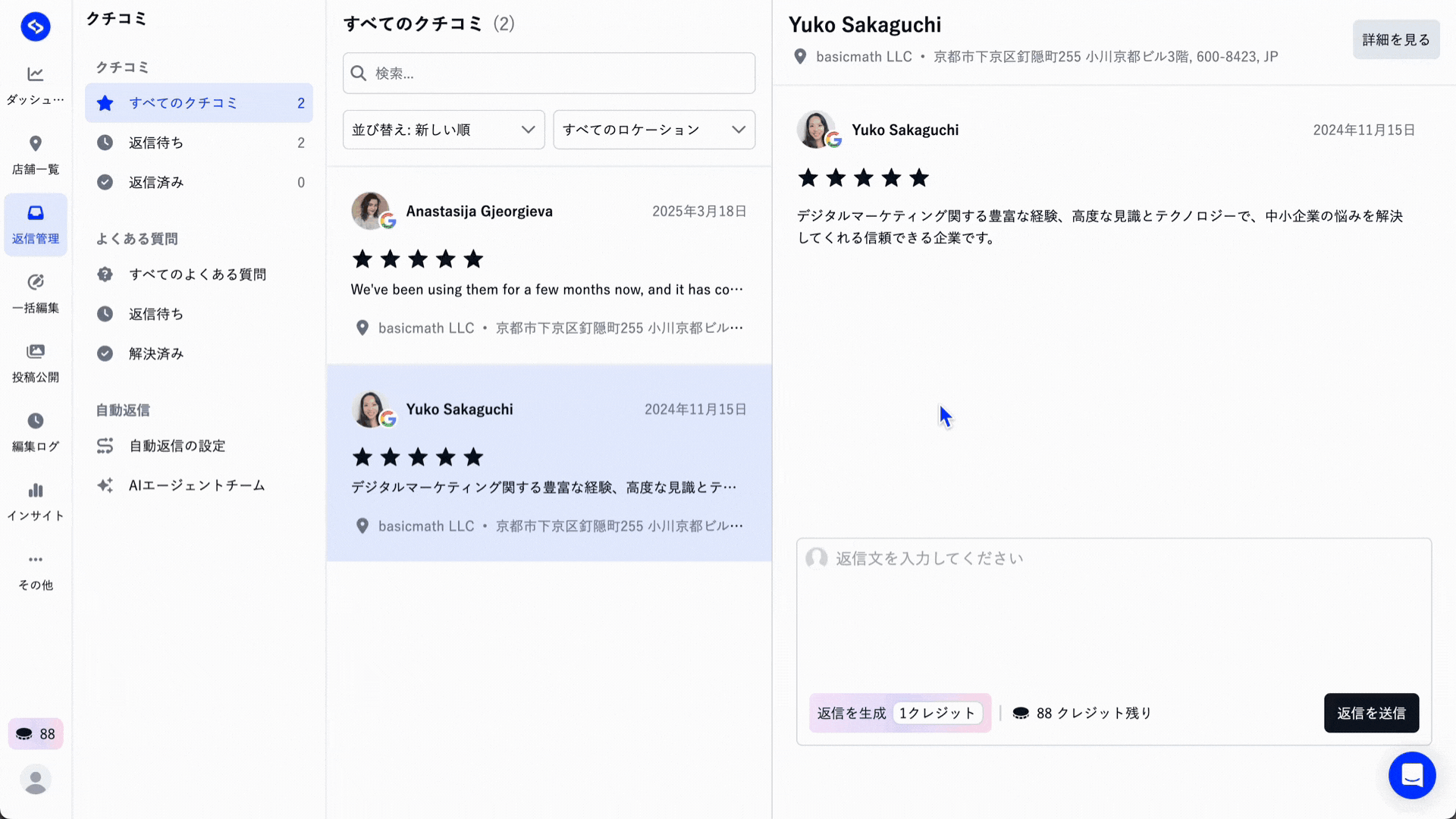 「お客様からの口コミに、もっと効率的に、もっと質の高い返信がしたい…」
