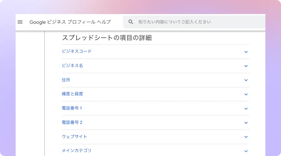 スプレッドシートの必須項目(特にNAP情報)がすべて埋まっているか再度チェックします。