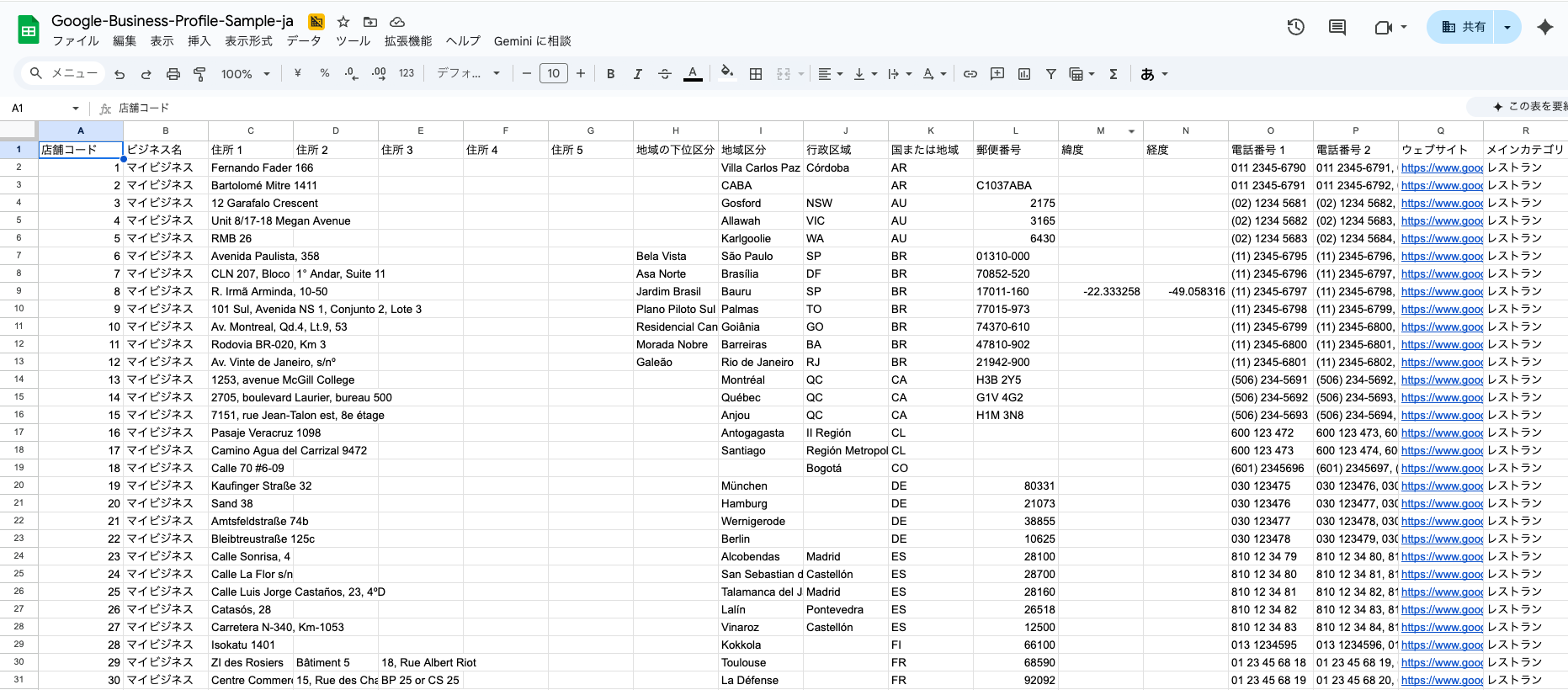 注意: スプレッドシートで店舗コードを更新することはできないため、情報を編集する前にこのGoogleガイドに記載されている手順に従ってください。
