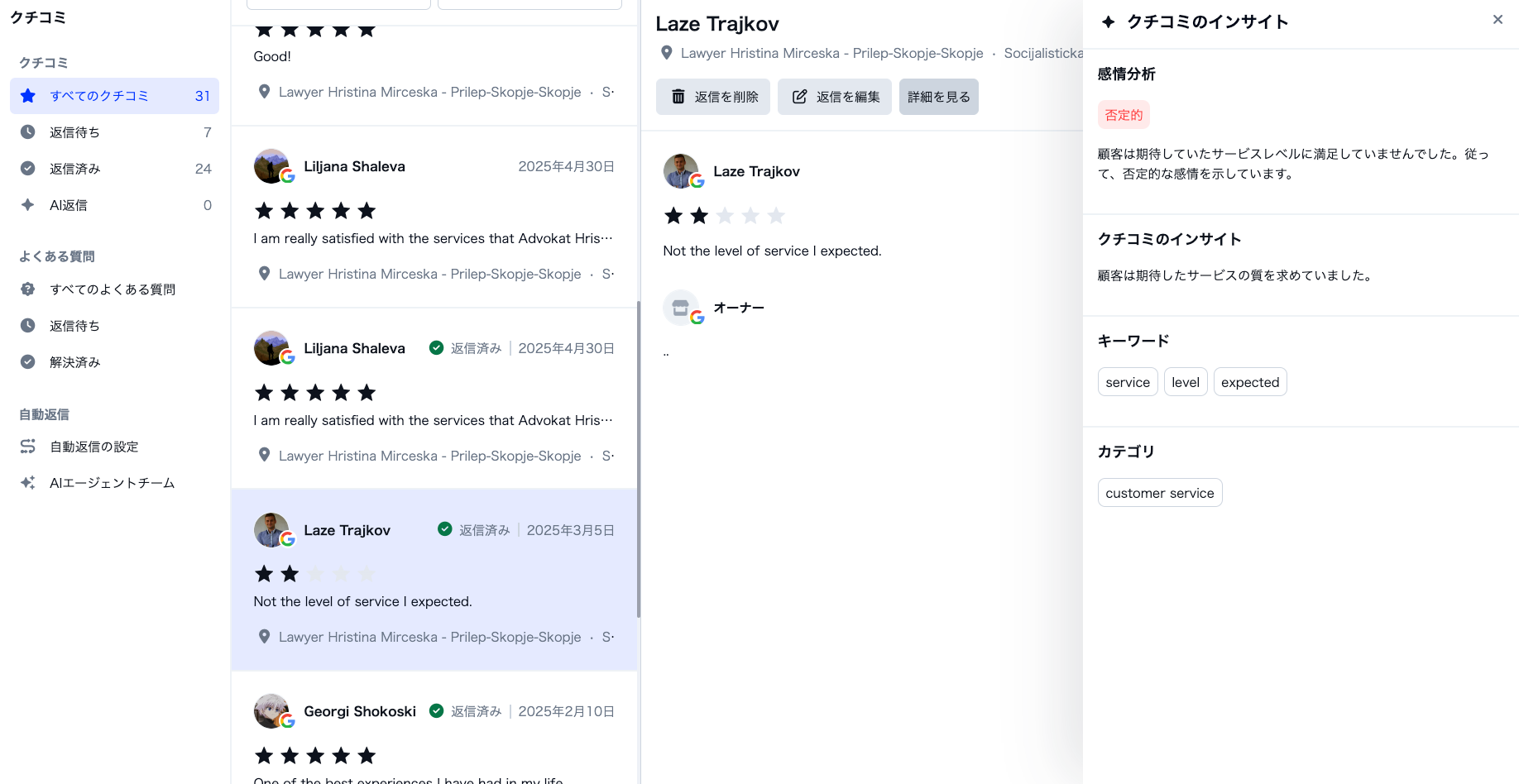ポジティブな口コミにもネガティブな口コミにも返信して、顧客のフィードバックを大切にしていることを示すことは、非常に重要なステップです。そうすることで、より強固な関係を築き、懸念事項に直接対処できます。